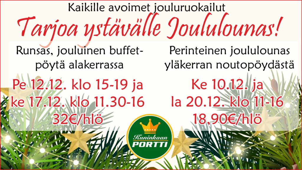 Lounas tarjotaan joka päivä noutopöydästä klo 11-16.